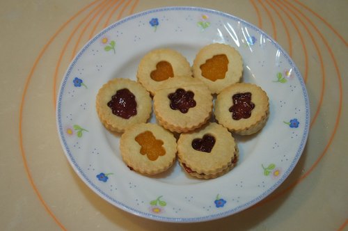 隔天就做了果醬餅乾....因為草莓過季了, 所以草莓醬就買現成的....