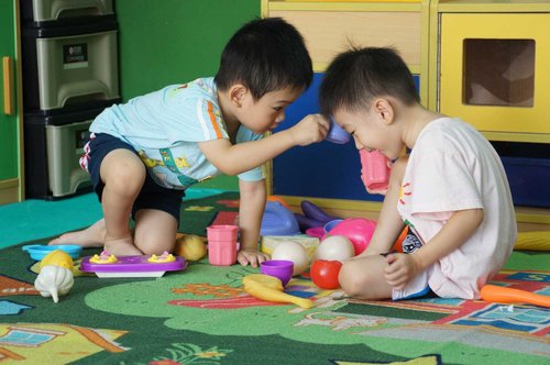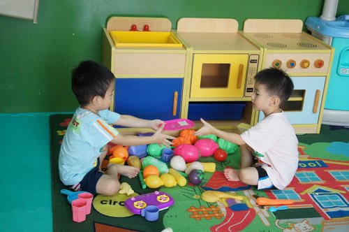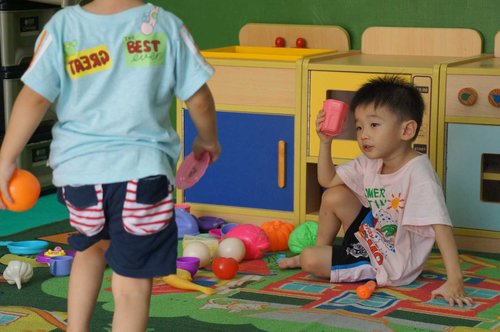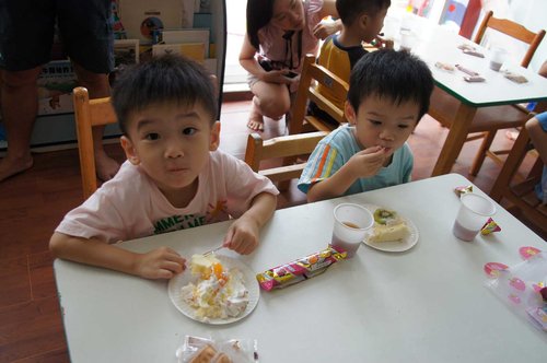 雙胞胎班上的女同學都超可愛的....愷愷很快和他們玩在一起...