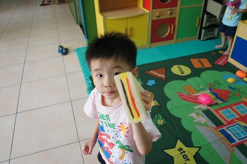 買了材料, 還給他們學作三明治......