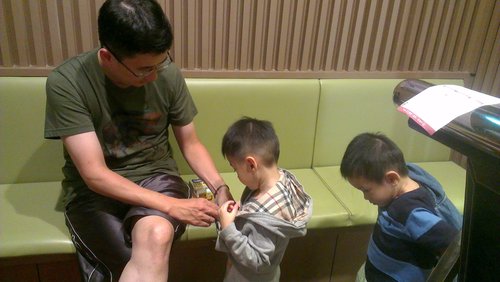 哈哈, 我們超幸運, 沒訂位, 還坐到這種蛋球裡....