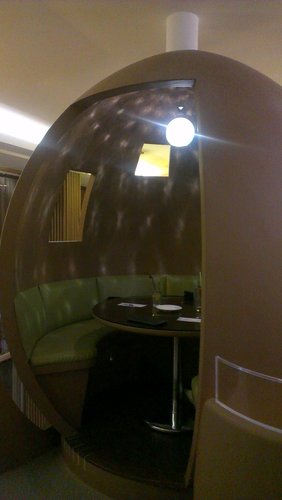 這蛋球裡, 回音很明顯,講話不用太大力, 就很大聲.... 餐廳整體的感覺卻很吵, 所以有小孩來,