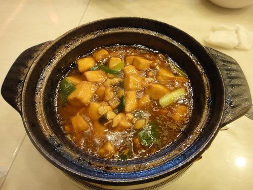 豆腐煲 , 味道很不錯, 只是這容器看來怎麼挺不乾淨的咧 ?