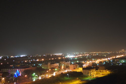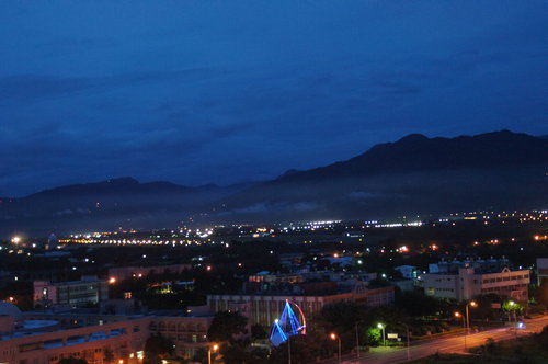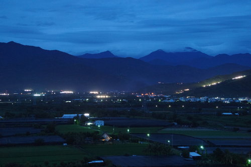 華燈初上的台東, 房外有兩個小陽台, 我們住十一樓, 景色很不錯呢 !!
