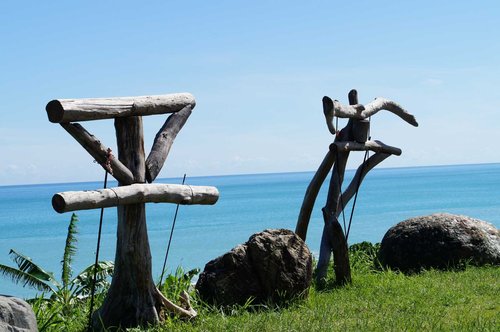 到達此處, 兩孩子還是在睡夢中我們在這拍了個照, 這海真藍啊 !!