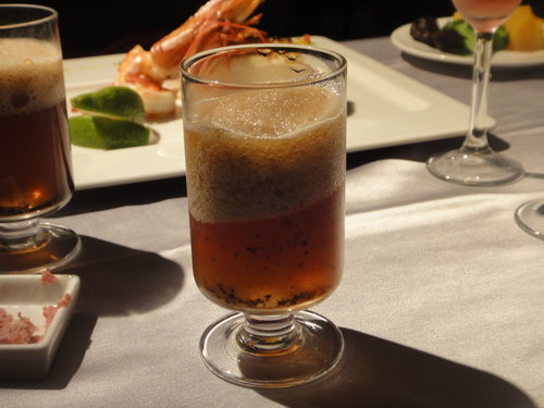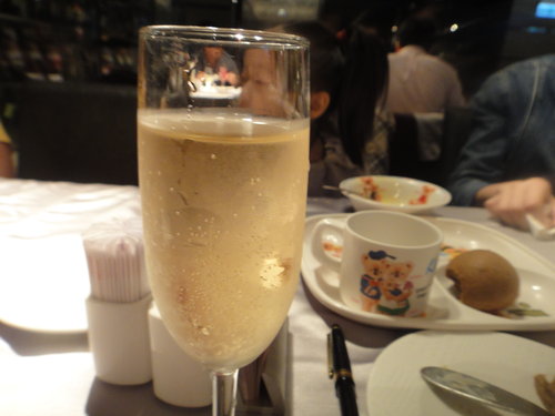 餐前酒,3% 的酒精... 這個我不愛喝, 酗酒的艾莉卡, 一口氣沒了咧...