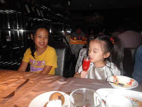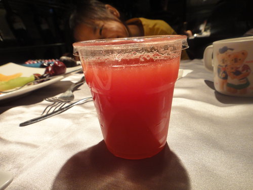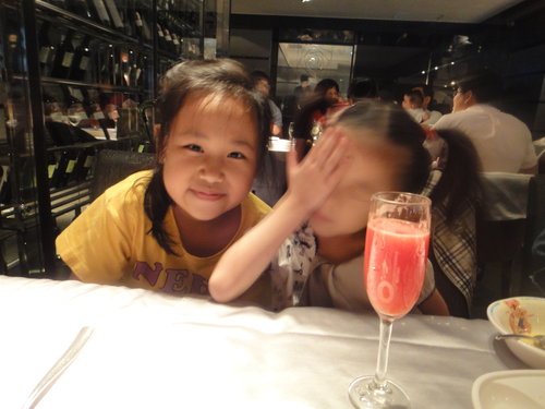 招待小朋友的現榨果汁, 他們招待一堆飲料耶....琦妹很像偷喝酒哦.....哈哈...