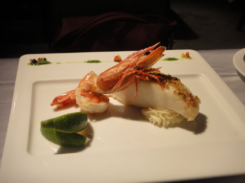 明蝦拚龍鱈 ... 阿曼達縮....吃到後面, 魚實在有點油...偶還幫她吃了一大塊咧, 份量粉足哦...