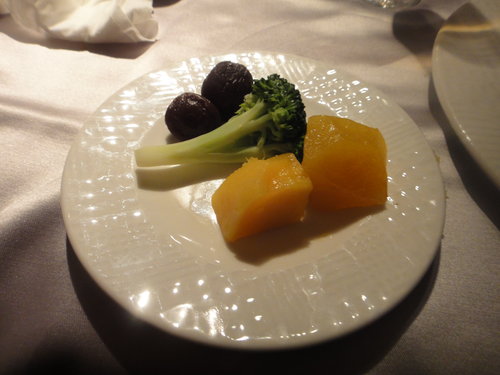 排餐的副菜, 地瓜裡微酸, 超好吃的...梅子偶就不愛了, 阿呆阿曼達吃了地瓜才吃梅子,