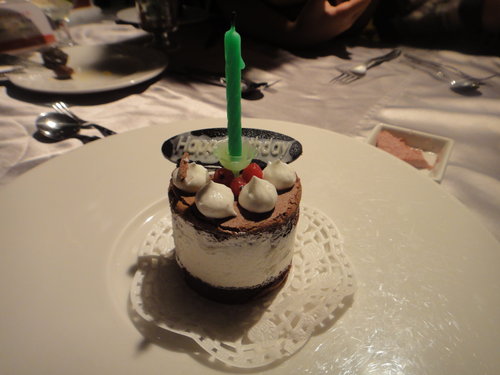 獸星的蛋糕.....厚...偶本來要低調耶...叫服務員不要唱歌, 結果兩小妮子幫偶唱生日歌,
