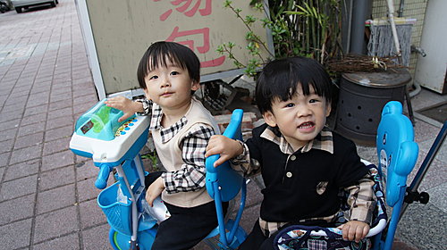 雙胞胎這兩小子....眼睛目標同樣都是哥哥手上的養樂多 !!