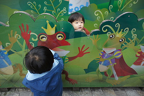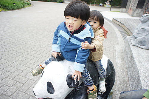 這是長頸鹿區, 兩小子, 走到粉累了...還一直想賴人抱....加油加油, 看續集去囉 !!
