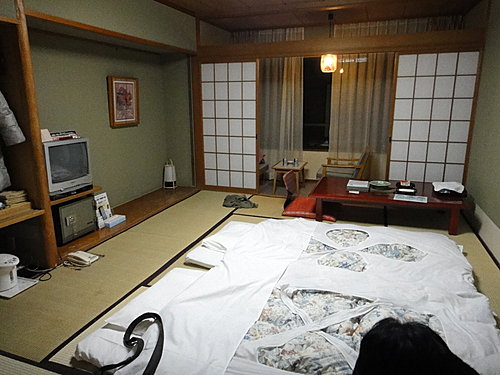 晚上住的飯店, 又是和式的....我不愛住和室的, 廁所都好小一間....
