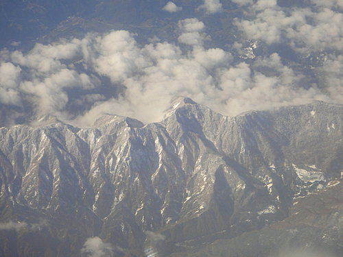 哇, 東北山頭在下雪囉...老公出發前還說不知會不會遇到下雪, 果真給他說中了....