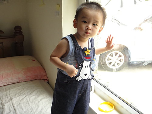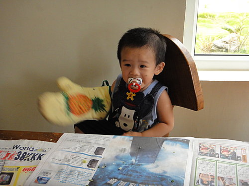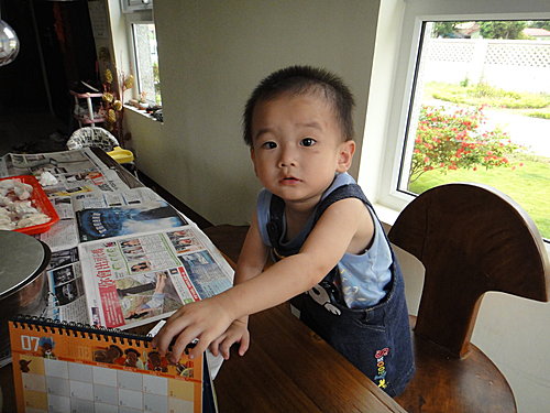 準備偷蜜芋頭的小帥...哇....被花現了....
