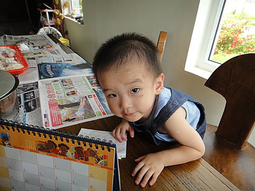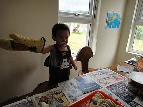 張董趁大人包水餃時...偷了一顆生水餃吃....偶的老天啊....