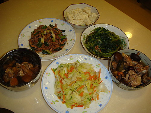 綠竹筍是偶的最愛, 今天買到一斤60, 算可以接受,現在正是時節, 當個開胃菜吧...作法: 帶殼冷水一起下煮四十分鐘, 冷卻後冰存, 要吃再剝, 冰涼美味....葱爆肉絲 油葱地瓜葉 清炒高麗菜 香菇雞湯 美味的一餐 兩人吃的份量, 實在是多了點, 還好, 老公說很好吃,但也吃的很撐...報告完畢!!