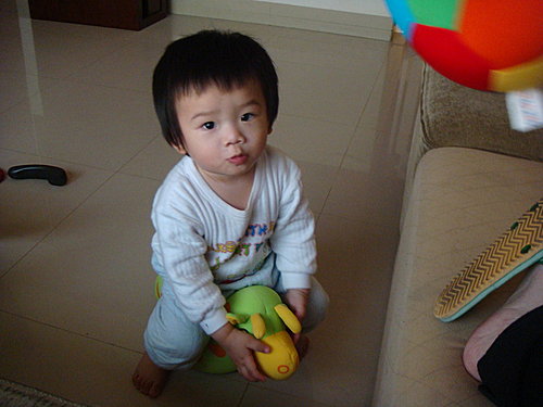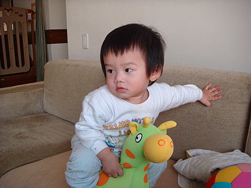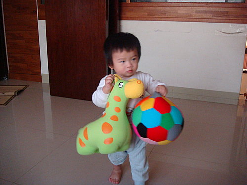 偶綿最近的新玩偶哦...媽咪也說, 那隻動物不知是啥...偏偏張董偶一看到, 就不放手...只好買回家啦...
