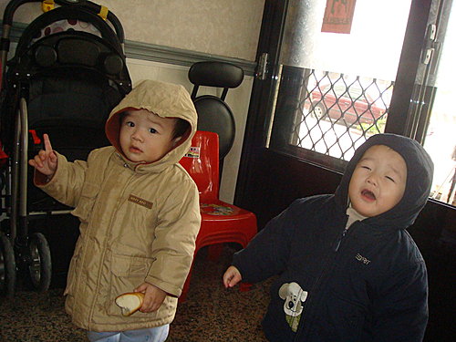 奶瓶玩具....還若有其事的喝起來了咧....張董這次黏隔壁小姐姐....小姐姐也愛跟他們玩...
