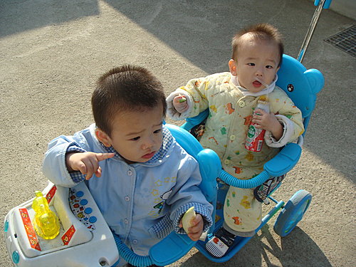 雙胞胎平日關在公寓裡悶的狠, 外婆家很大, 回去,幾乎都玩的很累...張董這張實在有夠老成的...小刁 每每張董回去, 一定都會有傷痕...這次是人中擦傷... 二姨又再亂餵東西吃了...
