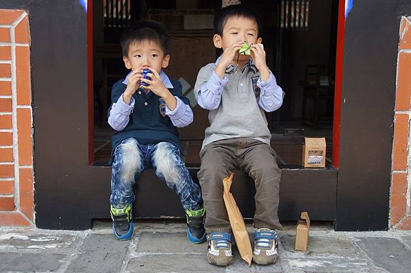 爸爸買了陶笛給他們兩個....他們在這吹起來了...