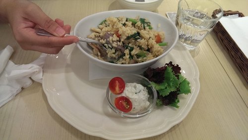 野菇啥米飯....份量蠻迷你的, 對女生來說, 很剛好...但如果一整個套餐下來, 還是會很飽很飽...