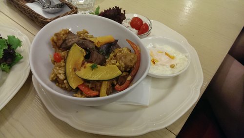 西班牙蕃紅花海鮮燉飯....好長的名, 我還記的起來....哈哈...這挺辣的.. 慧美小姐吃挺辣的...