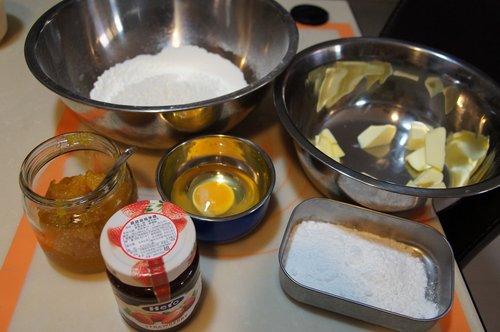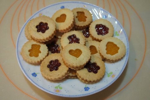 隔天就做了果醬餅乾....因為草莓過季了, 所以草莓醬就買現成的....