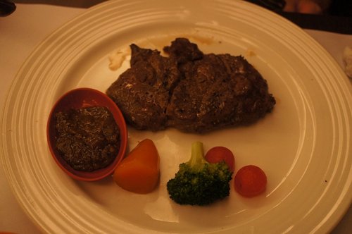 南瓜濃湯還不錯喝, 只是上菜的順序搞錯了, 上了主菜才發現濃湯還沒上,
