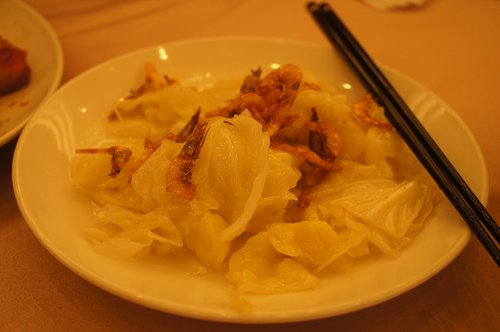 櫻花蝦炒高麗菜....菜粉甜, 很好吃....